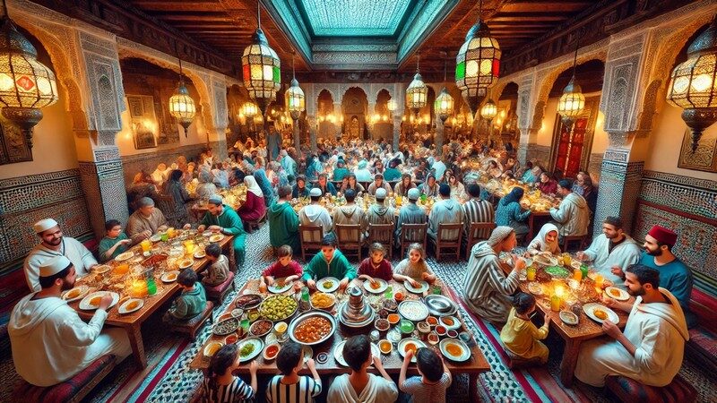 Das Fastenbrechen, Iftar genannt, ist ein zentrales soziales Ereignis. In der Schweiz hat sich eine multikulturelle Iftar-Kultur entwickelt, die Einflüsse aus dem Balkan, der Türkei, Nordafrika und dem Nahen Osten vereint.